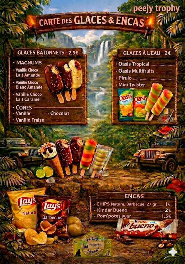 Ouf, enfin un point d’eau dans une ambiance tropicale ! Sirotez cocktails et diabolos servis dans une véritable noix de coco, ou sodas, dans un espace lounge agréable, abrité du soleil.